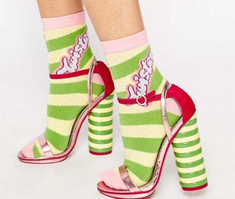 Twister socks – £4.00. Shoes – £50.00 (currently sold out)