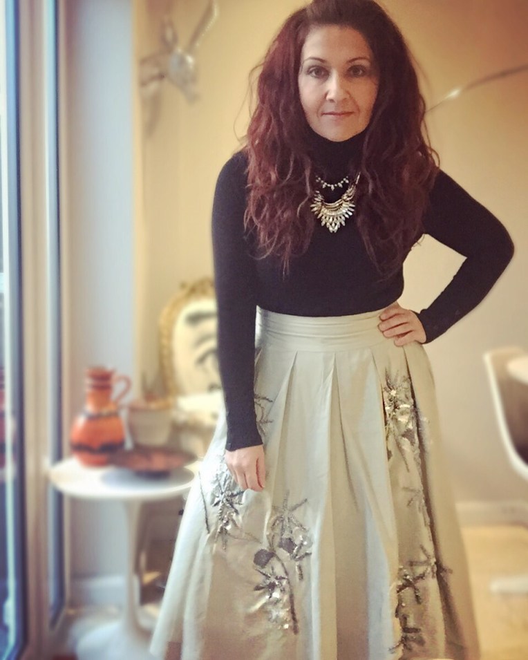 Roll neck – M&Co., necklace – Topshop, Skirt – Monsoon.
