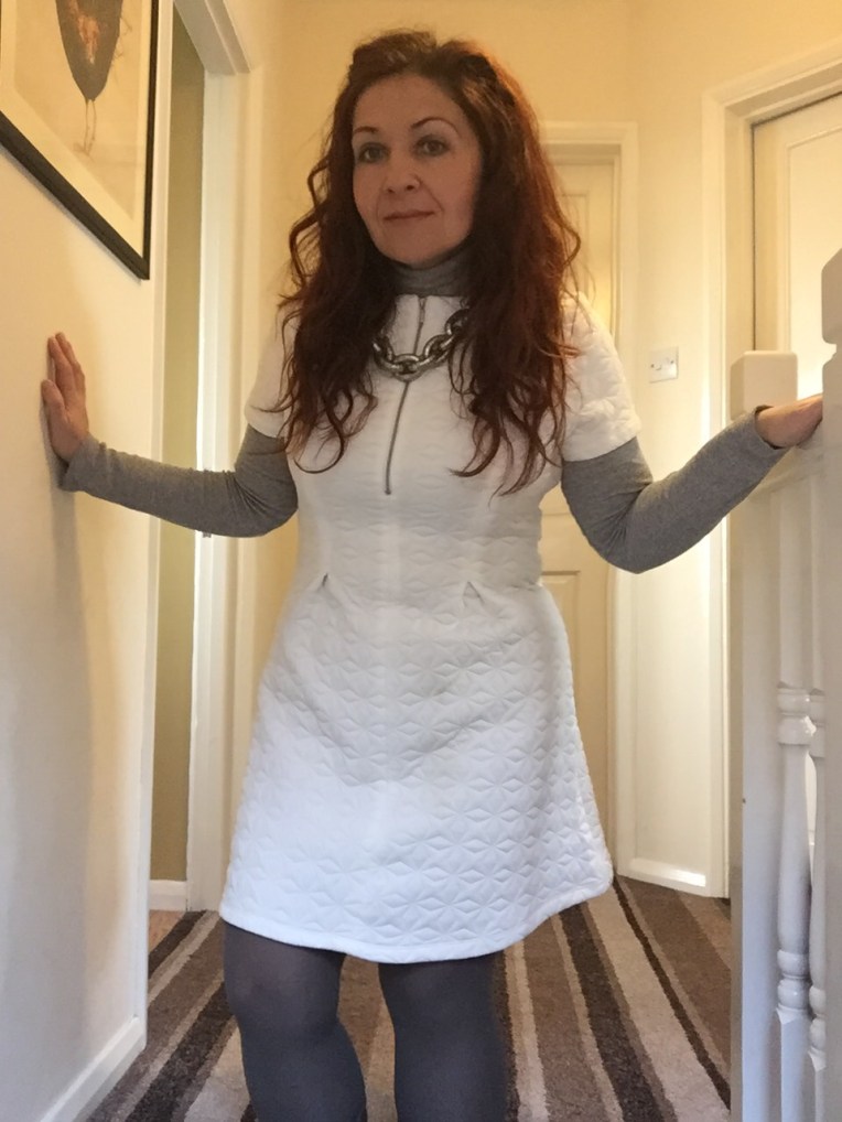 …a white dress always looks cool and stylish! Dressing one for winter with a roll neck underneath and boots gives it a futuristic vibe which I’ve fully exploited in todays styling post. White is definitely is the colour to stand out in during the winter months and is great for looking a bit different.