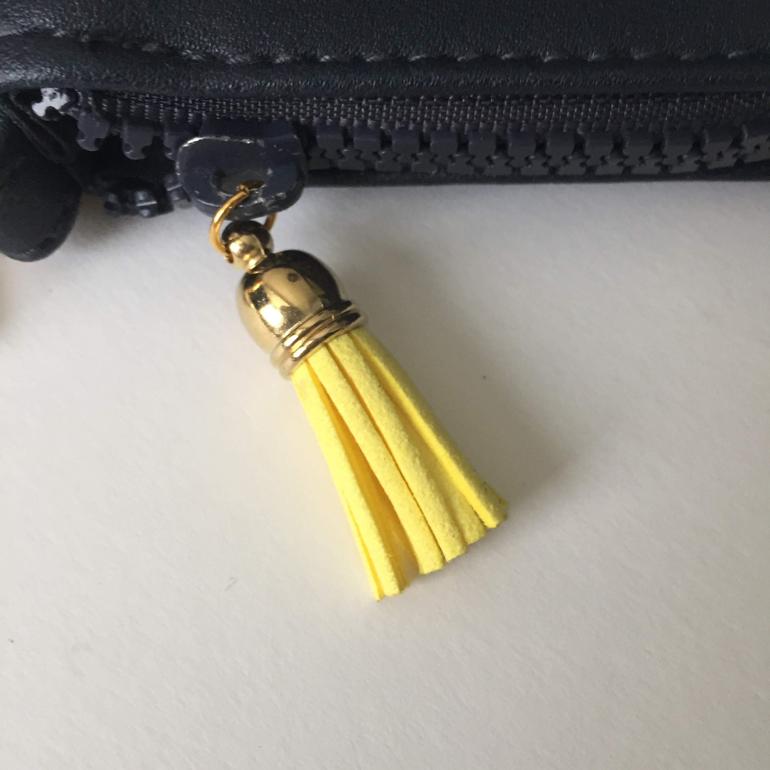 I then removed the existing zipper pull and replaced it with a simple tassel from the eBay bag charm. I kept the original pull safe as I knew I’d be using it and deconstructed the 2 charms ready to use them.