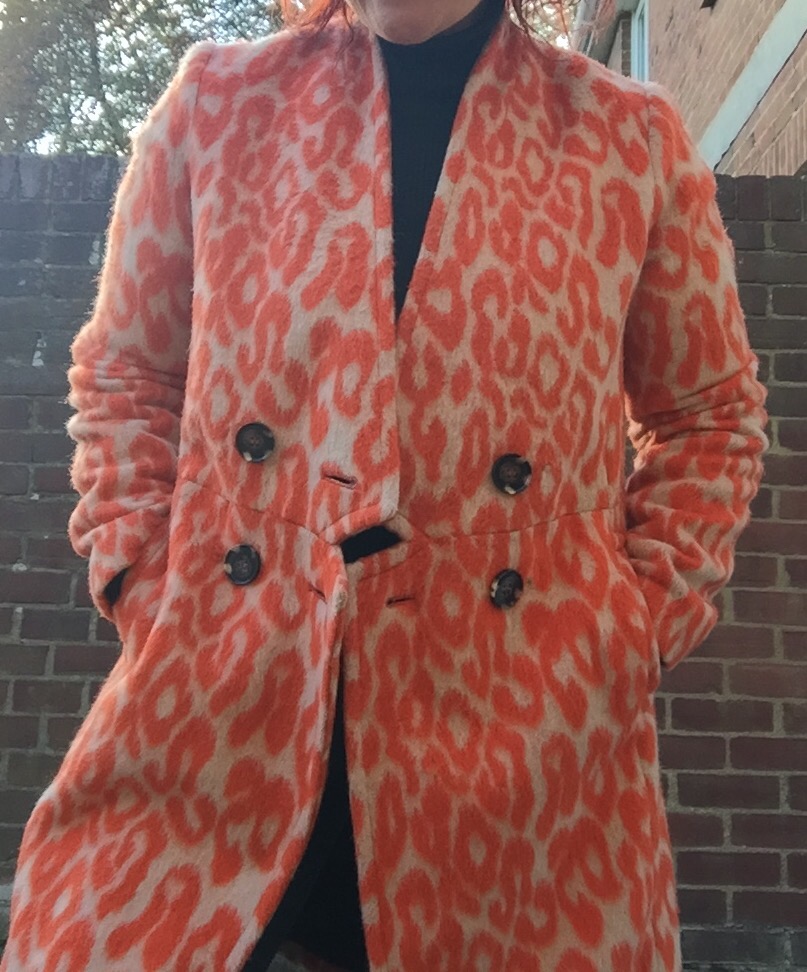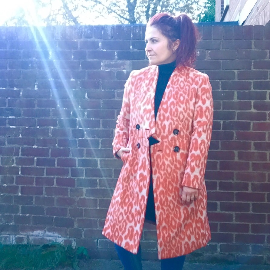 OK, so its not to everyones taste (my boyfriend included) but it definitely makes a statement!  Worn with a simple outfit of black polo neck and skinny jeans this coat looks so striking…and I love it!