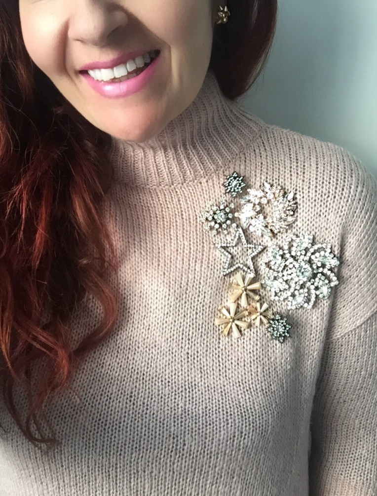 I added a couple of my own vintage brooches, and….et voila!