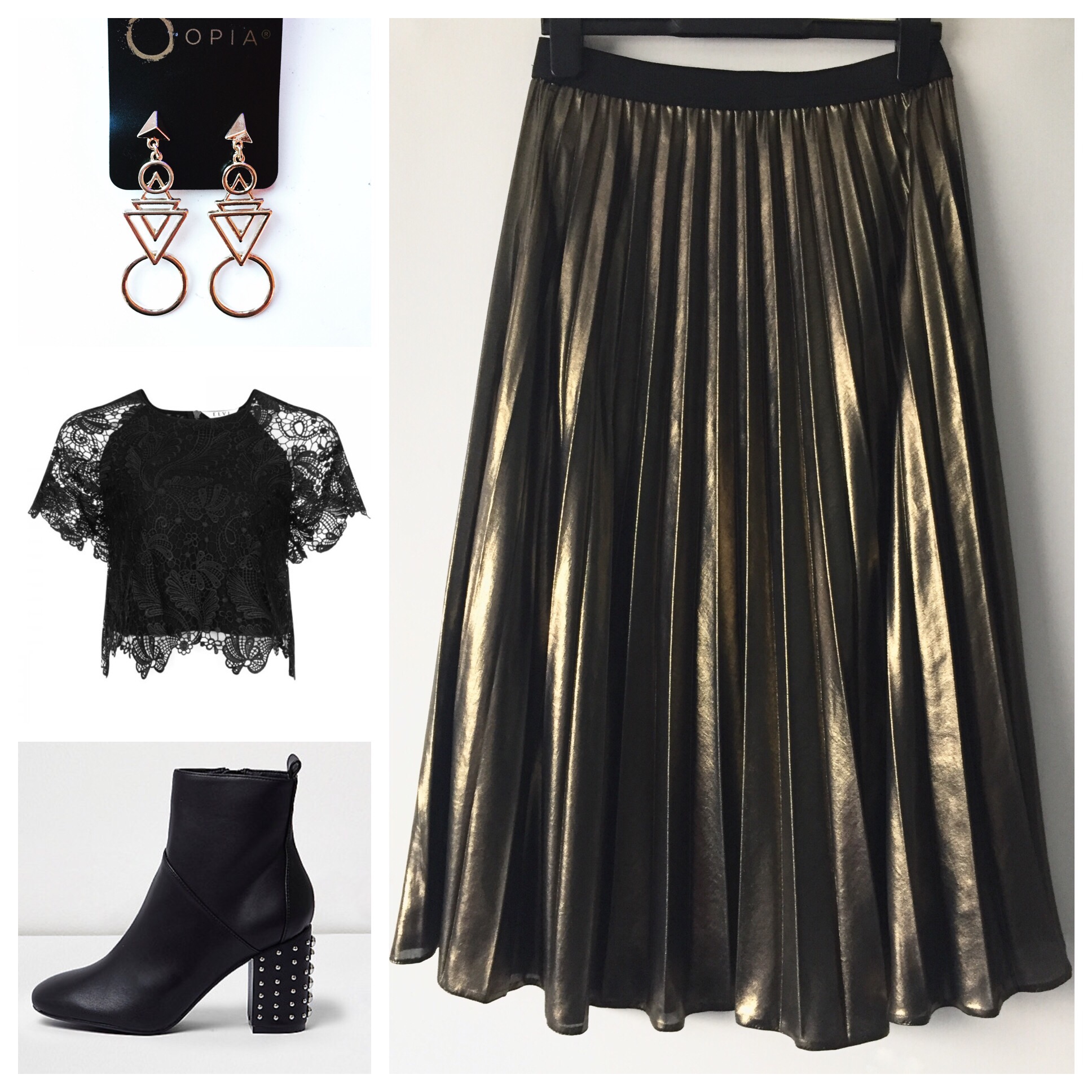 This will be my boxing day/night outfit but then I will wear the top with black jeans and the leopard boots for a more casual party look later in the week for a night in the pub and the metallic pleated skirt with a lace top and heels for a sexier, party look which would be perfect for New Years Eve. Mix and match party dressing – perfect!