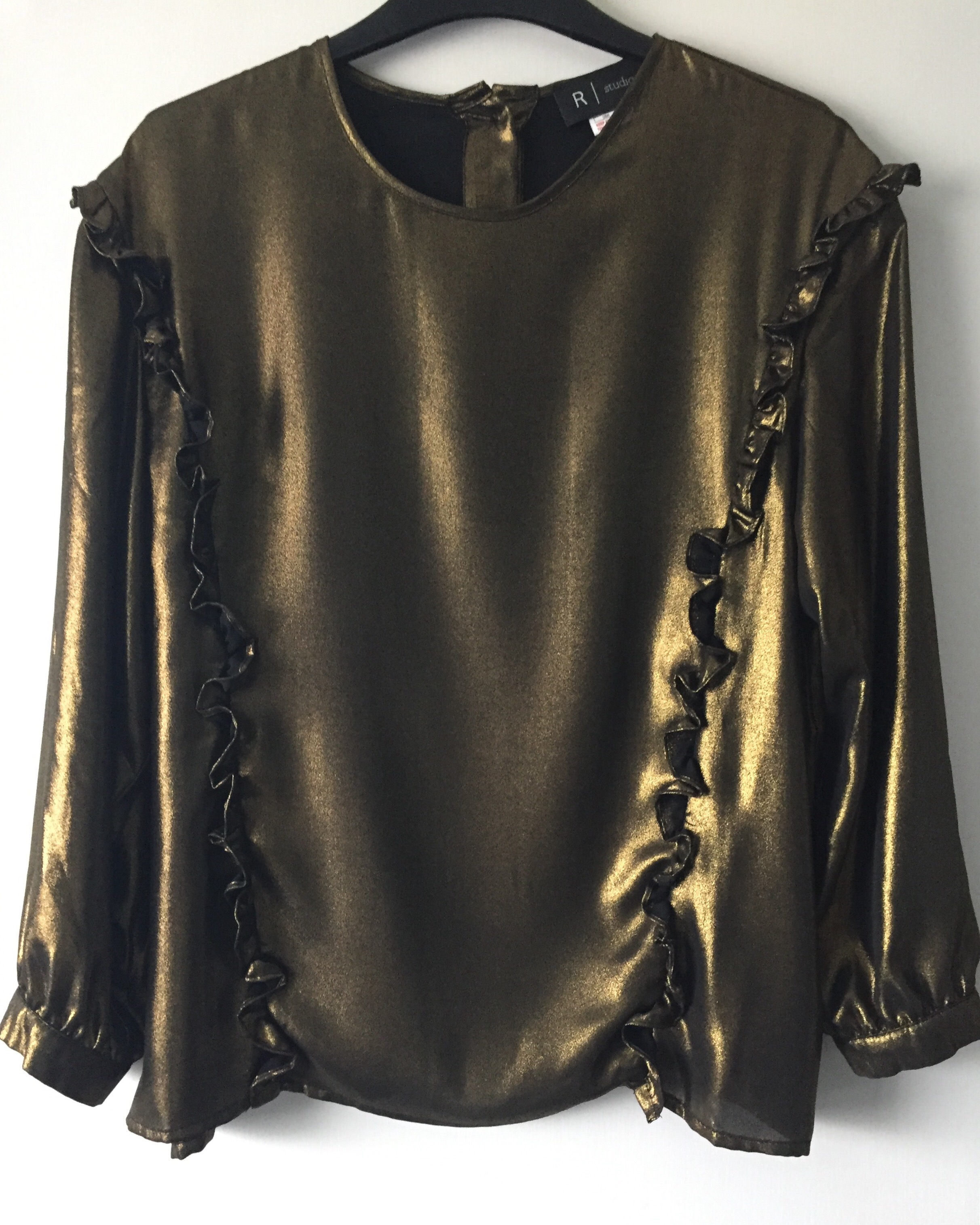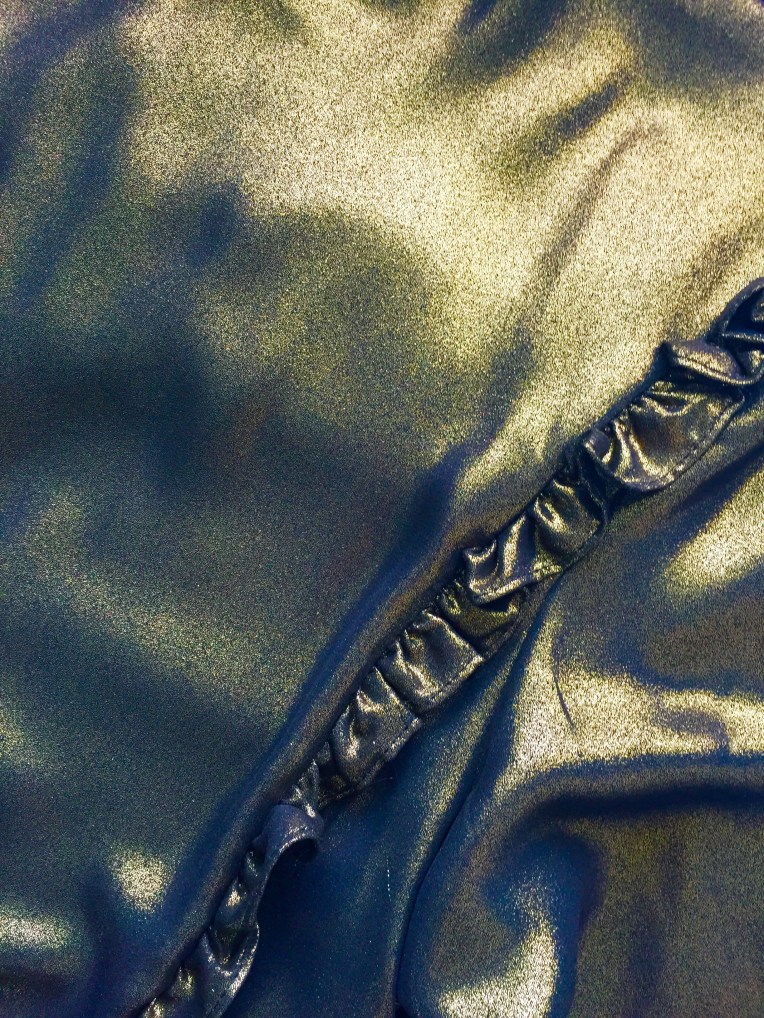 Who doesn’t want to sparkle at Christmas? This 1980’s style top is made from the most amazing fabric – it looks like molten metal. Its dressy without being too over the top and is the perfect choice for a night out when you dont want to look too dressed up.  The frilled front and buttons up the back just add to its loveliness.