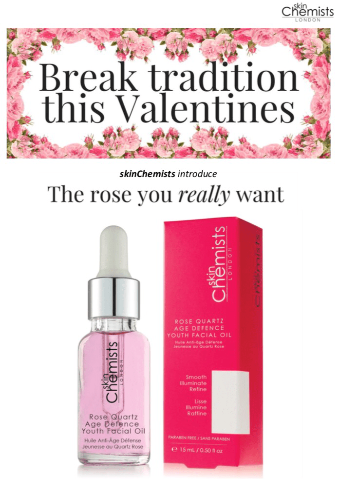 When Skin Chemists got in touch and said they wanted to send me a different kind of Valentines gift I was intrigued. Now I’m not a big fan of Valentines Day (I blogged about it here) but I am a big fan of beauty products and last year was very impressed with the Skin Chemists Snail Serum I reviewed (see the non slimy results here) so was excited to find out what treat I would receive.