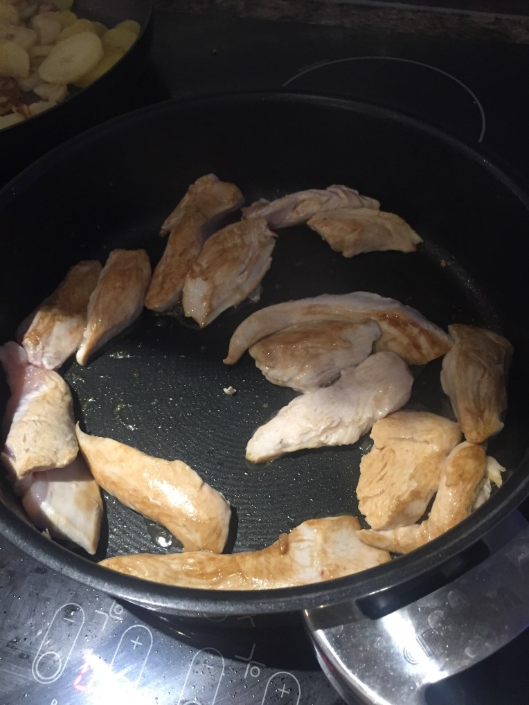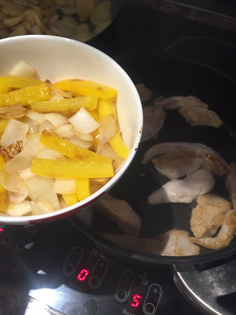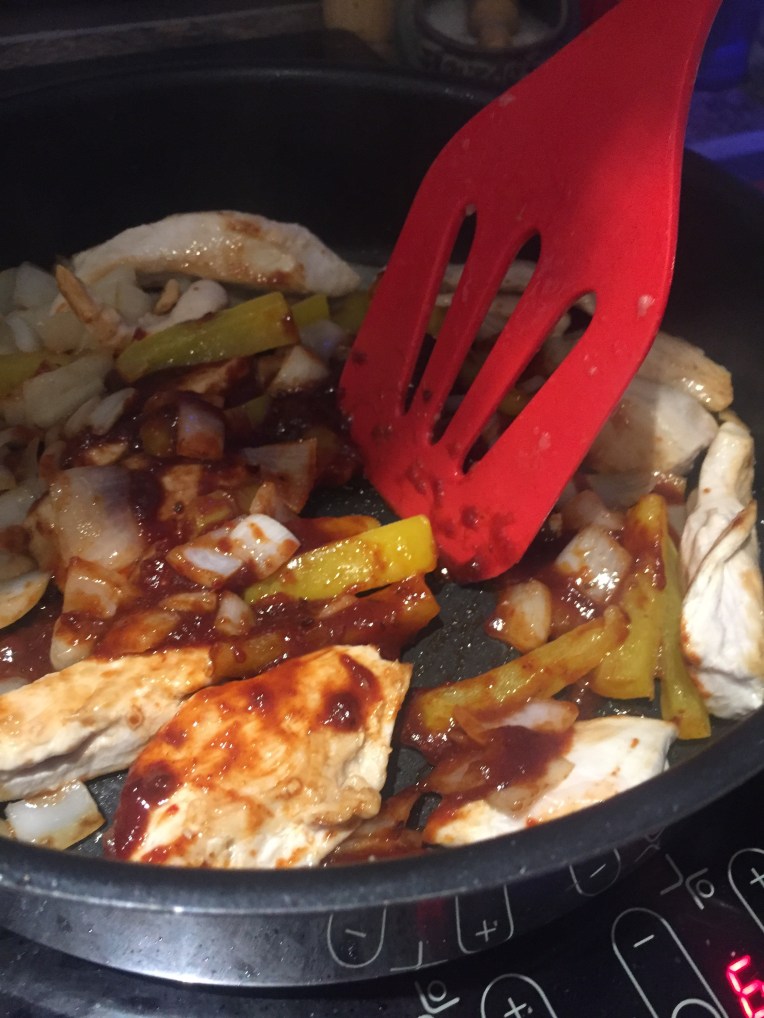 Following the receipe on the packet (I love a bit of receipe inspiration) we needed fresh chicken breasts, some peppers and an onion to create our feast. Its a lovely thick sauce which smells delicious the minute you open it and theres lots in a pack. One pack = two servings and its definitely enough for two hungry people.