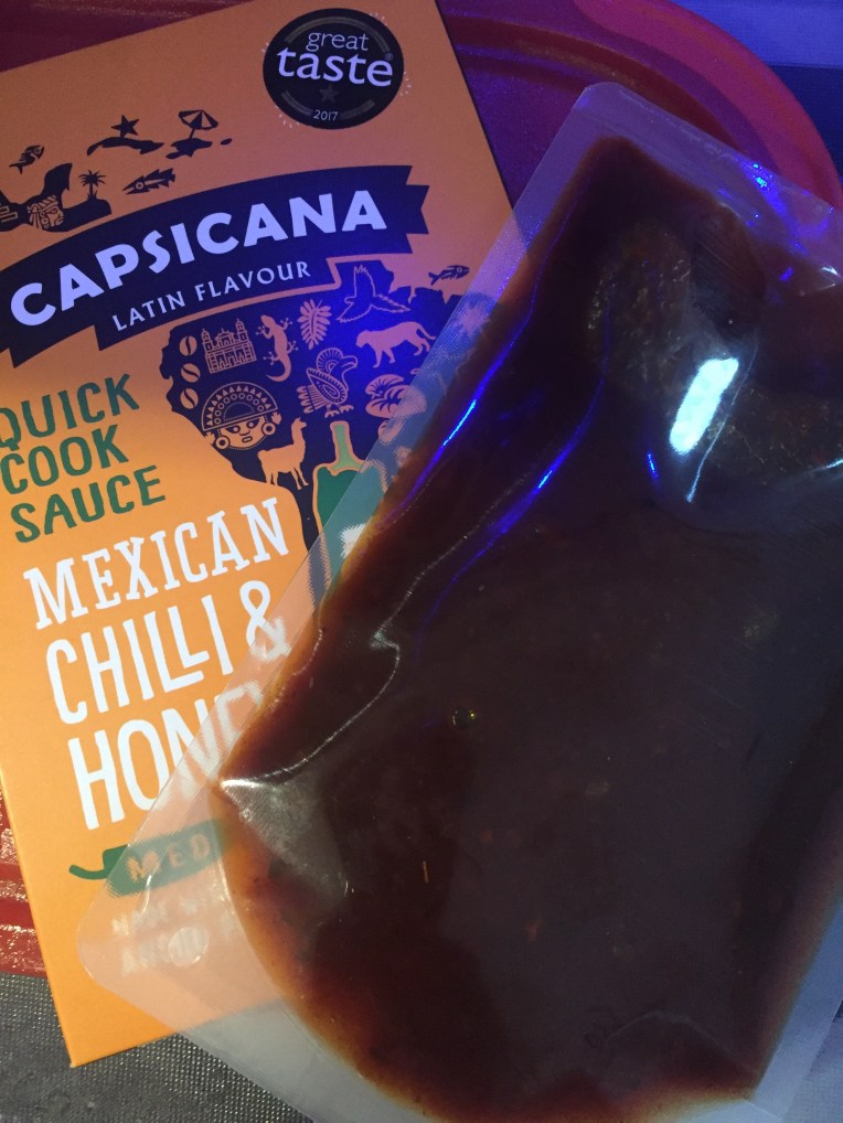 For our first use we went for the Mexican Chilli & Honey sauce. This is a sauce based on ‘Puerco al horno con salsa de chile ancho y miel’, a classic Mexican dish. To recreate it, Capsicana use Mexican-grown chipotle & ancho poblano chilli peppers as well as honey, which has featured in the country’s food since Mayan times. The Mayans believed that a native stingless bee had been given to them by one of their gods and that it was a link to the spirit world – honey has been integral to Mexican cooking ever since. Its a medium level heat so I thought was a good place to start!