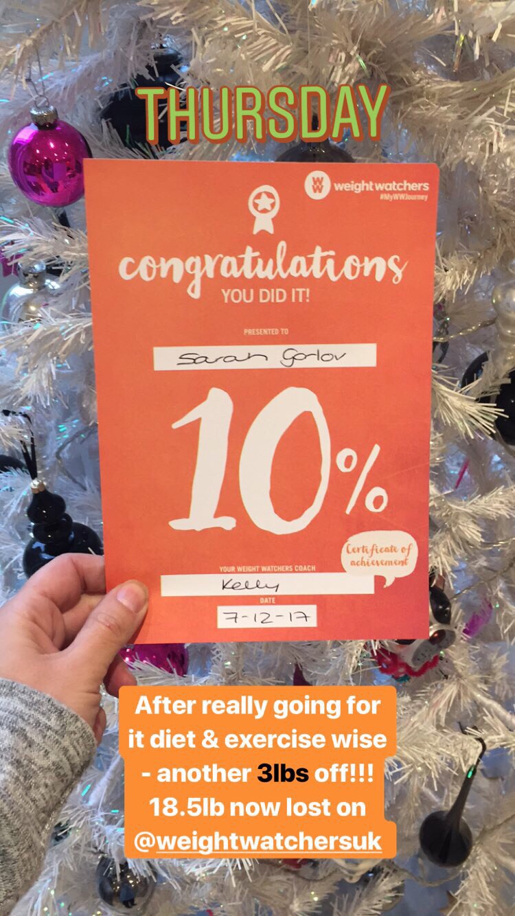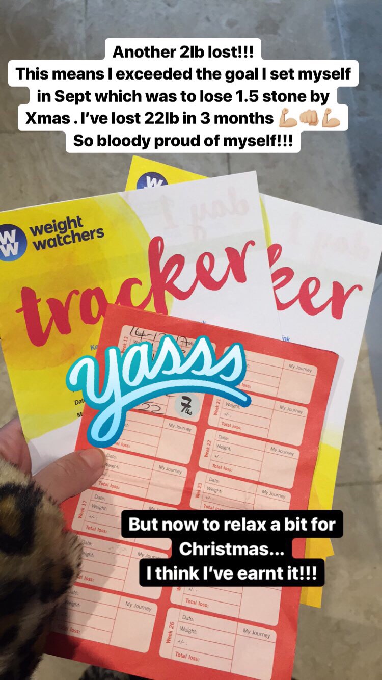 My last weigh-in was this week and I lost another 2lb taking me to 1lb over my goal of losing 1.5 stone by Christmas. I am so proud of myself as it has been really hard particularly as it got closer to Christmas.