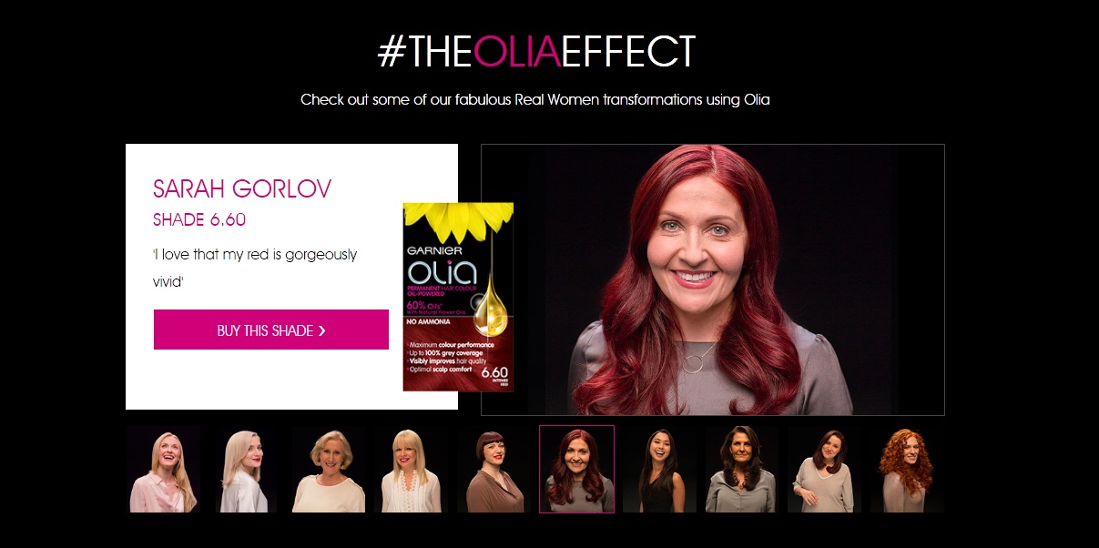 I am very proud to be the face of Garnier Olia hair dye shade 660 (Intense Red) appearing on your TV and in online adverts and films.