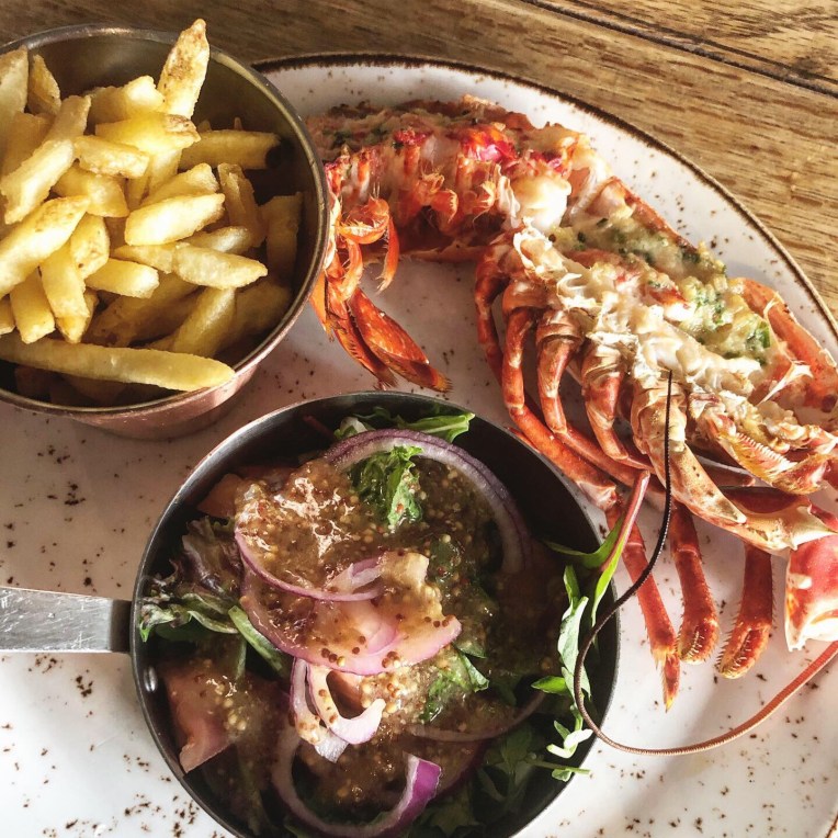 Being so close to the sea, and seafood clearly being a speciality, we both decided to go for a seafood main course. I went for the half Lobster (my first time eating Lobster – exciting!) and Russ went for the Dover Sole.