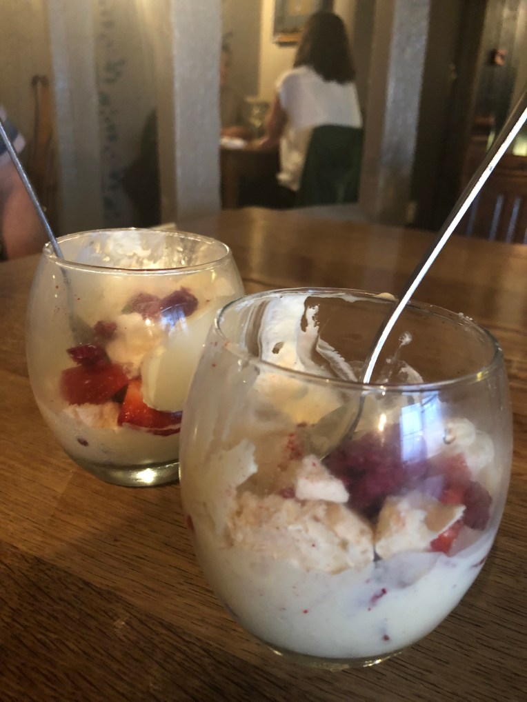 For once we both went for the same option – Eton Mess. One of my all time favourites it was served with Chantilly cream, vanilla ice cream and a generous sprinkling of fresh mint – I ate mine so fast I forget to take a decent photo of it!!!