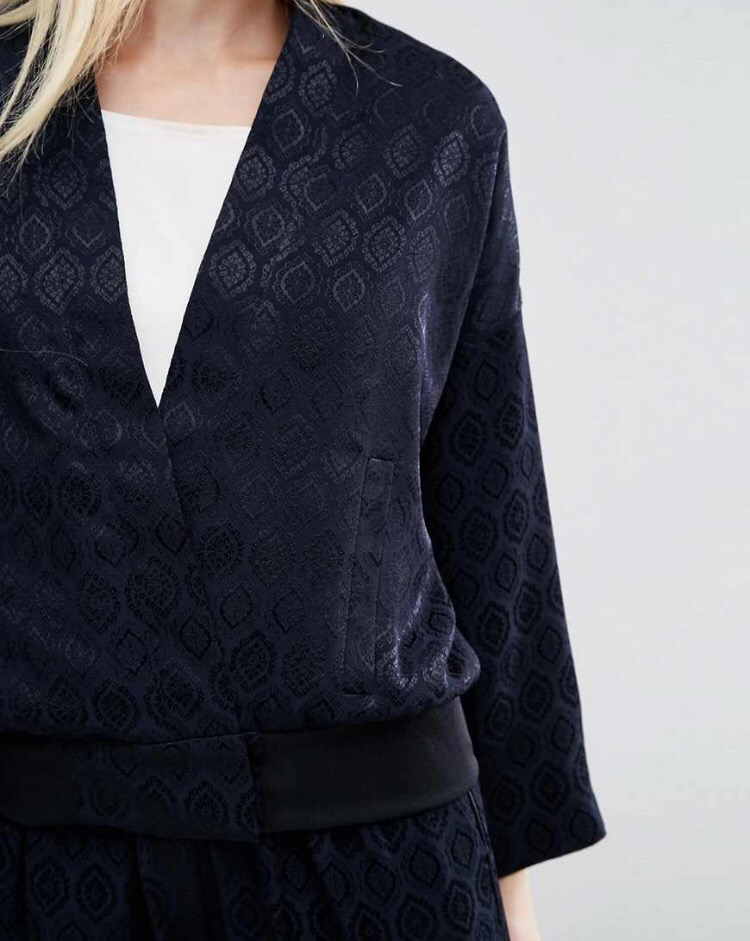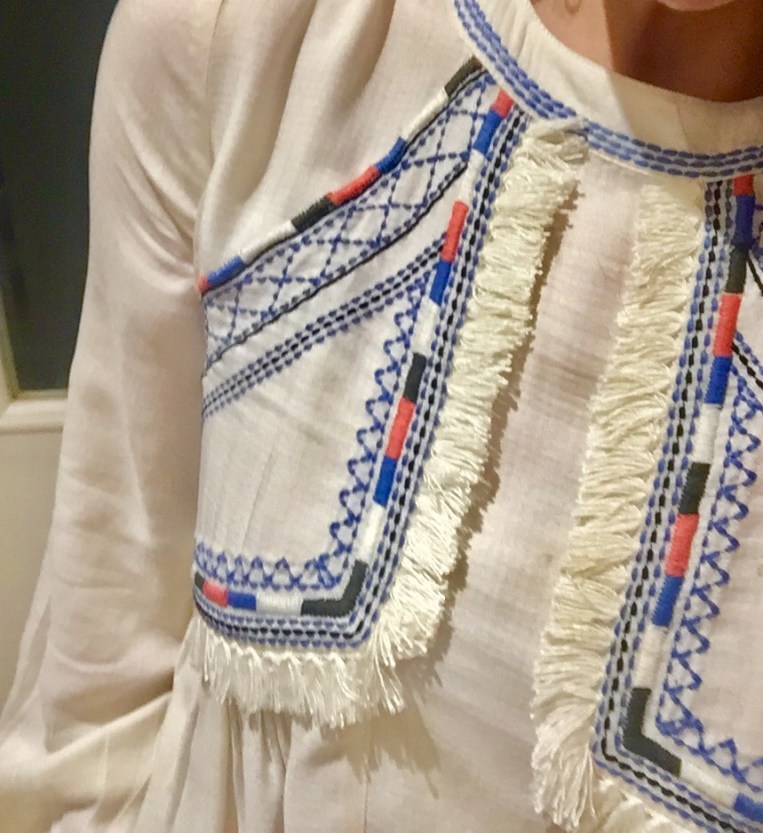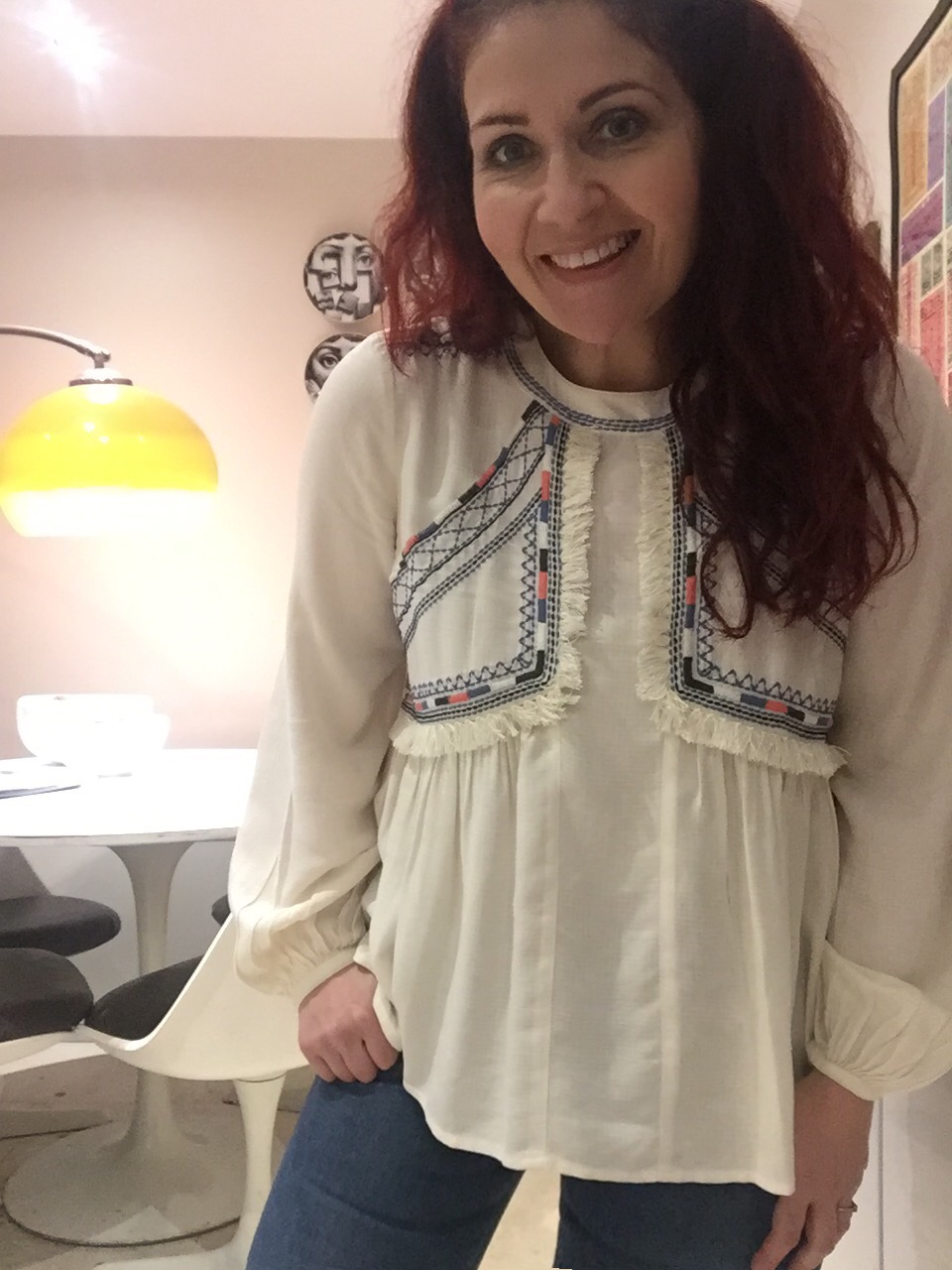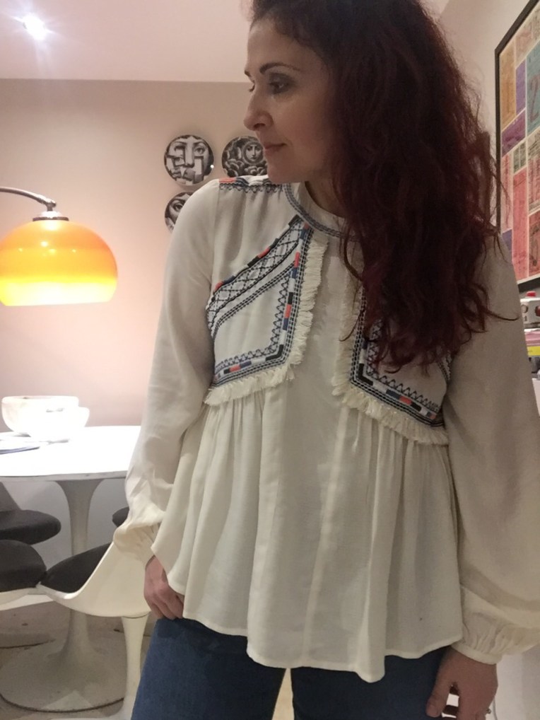 Boho jacket, fluted sleeve jumper, assymetrical earrings / M&S