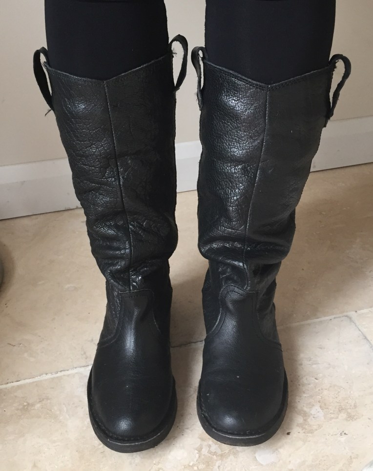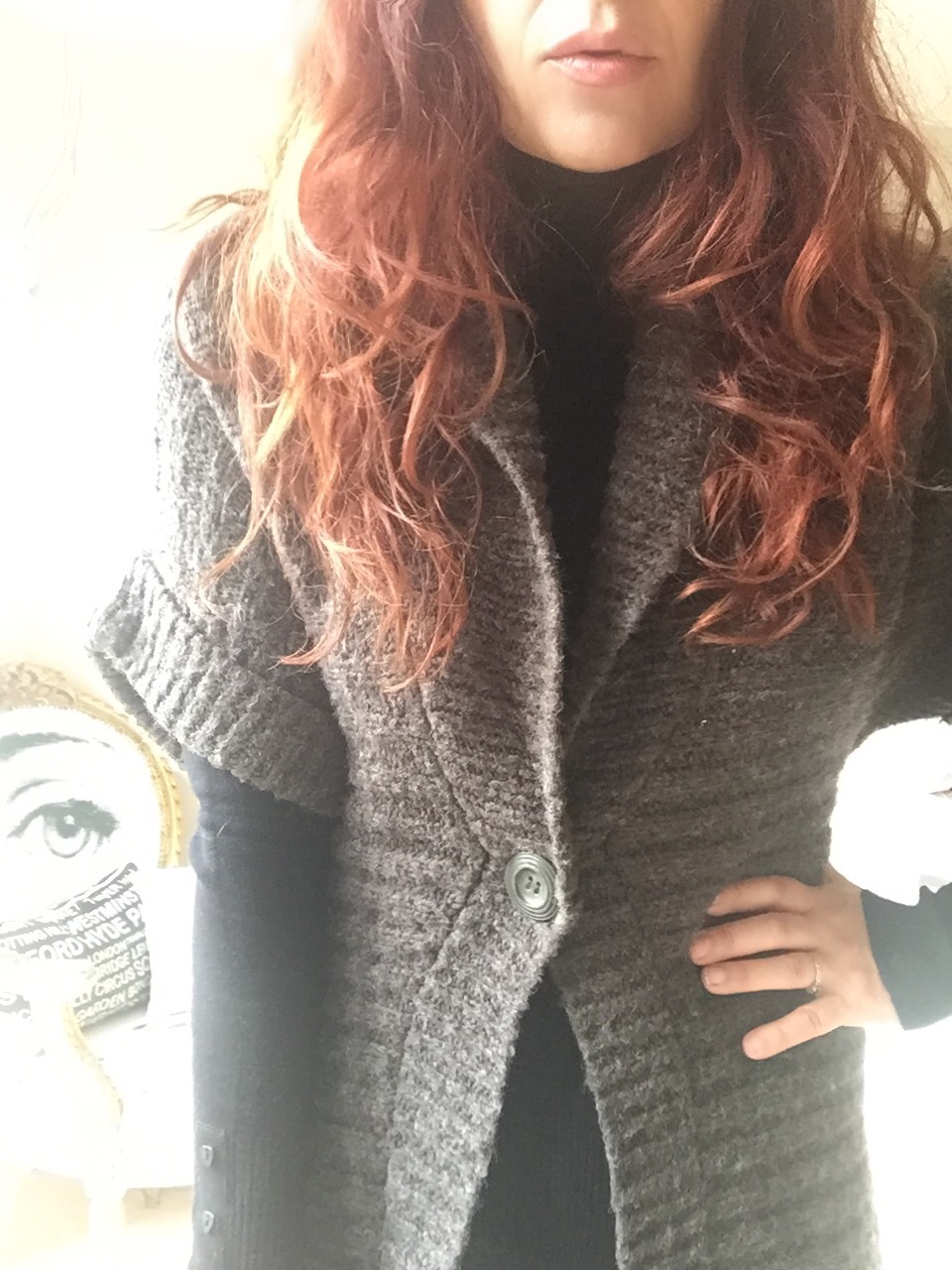 Todays uniform – a long jumper/cardigan, leggings and knee high boots What you need in your wardrobe –
