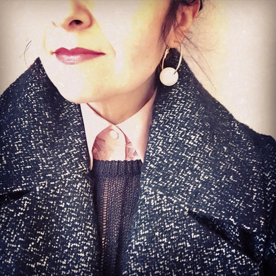 The outfit chosen for me was contemporary daytime look that could be dressed up for an evening – biker jacket, black slim leg jeans, a white vest and a statement necklace. You can see why I was happy! I added my own shoes – black and leopard print flats and was ready to go! The David Emanuel jacket is a real hero piece – a strong colbalt blue but not too bright and made from a soft, moleskin type fabric. I wore a UK size 10 – its a good fit and also looks great zipped up which isn’t always the case with a biker style jacket.