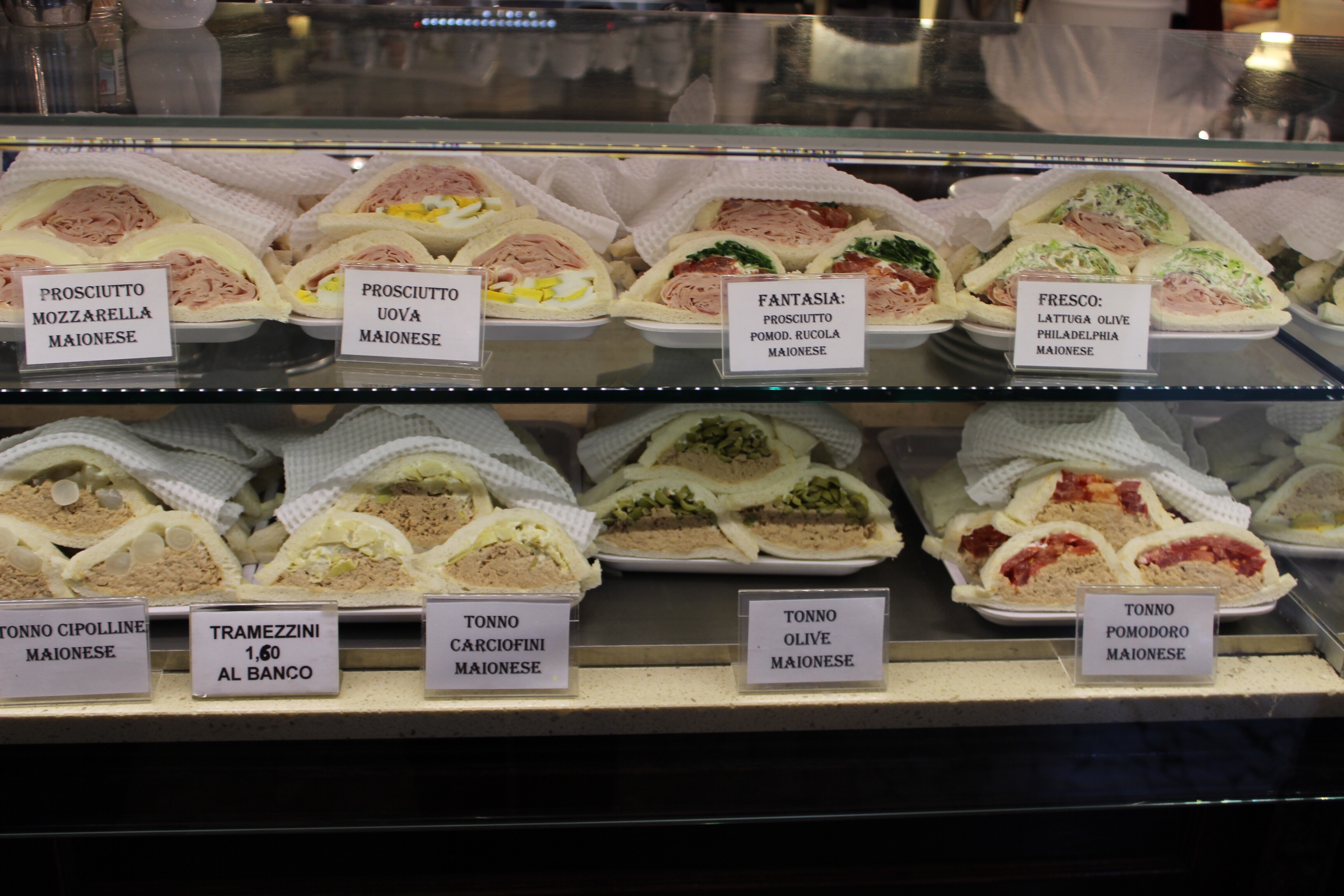 Pasta, Pizza, Gelato, wine, butter biscuits… Italy is the home of great food and drink. Alongside the usual Italian fare, Tramezzini, also called Venetian tea sandwich was a must for me. These triangular sandwiches (starting 1.50 euro per piece) come with many different filling.  My favourite? A whole boiled egg surrounded by tuna – utterly delicious.